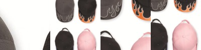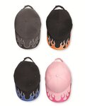 Structured, six-panel, mid-profile silhouette with an asymmetrical flame design on the side.