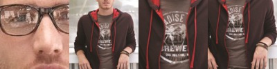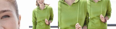- Raw edge seams around hood opening, pocket seams and neckline
