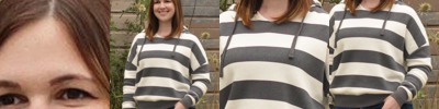 W21721 Women's Striped Fleece Boxy Hooded Sweatshirt