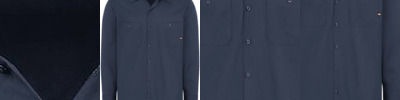 - One-piece, topstitched, lay-flat collar › Hemmed-sleeve ends