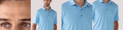For a more style-forward polo, everyday pique knit is replaced with a soft jersey blend for a subtle drape and a smooth hand. Moisture-wicking and self-turned cuffs and hems lend cool vibes, all around.