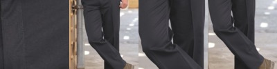 - Two slack style front pockets, two set-in welted hip pockets