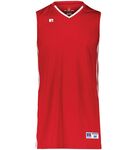 Color side is 100% polyester propelit micromesh wicking knit * White side is 100% polyester wicking knit * Wicks Moisture * Outside locker label * V-neck collar * Contrast color inserts and piping * Fully reversible * Each layer hemmed separately for easy embellishment * Designed to be NFHS compliant